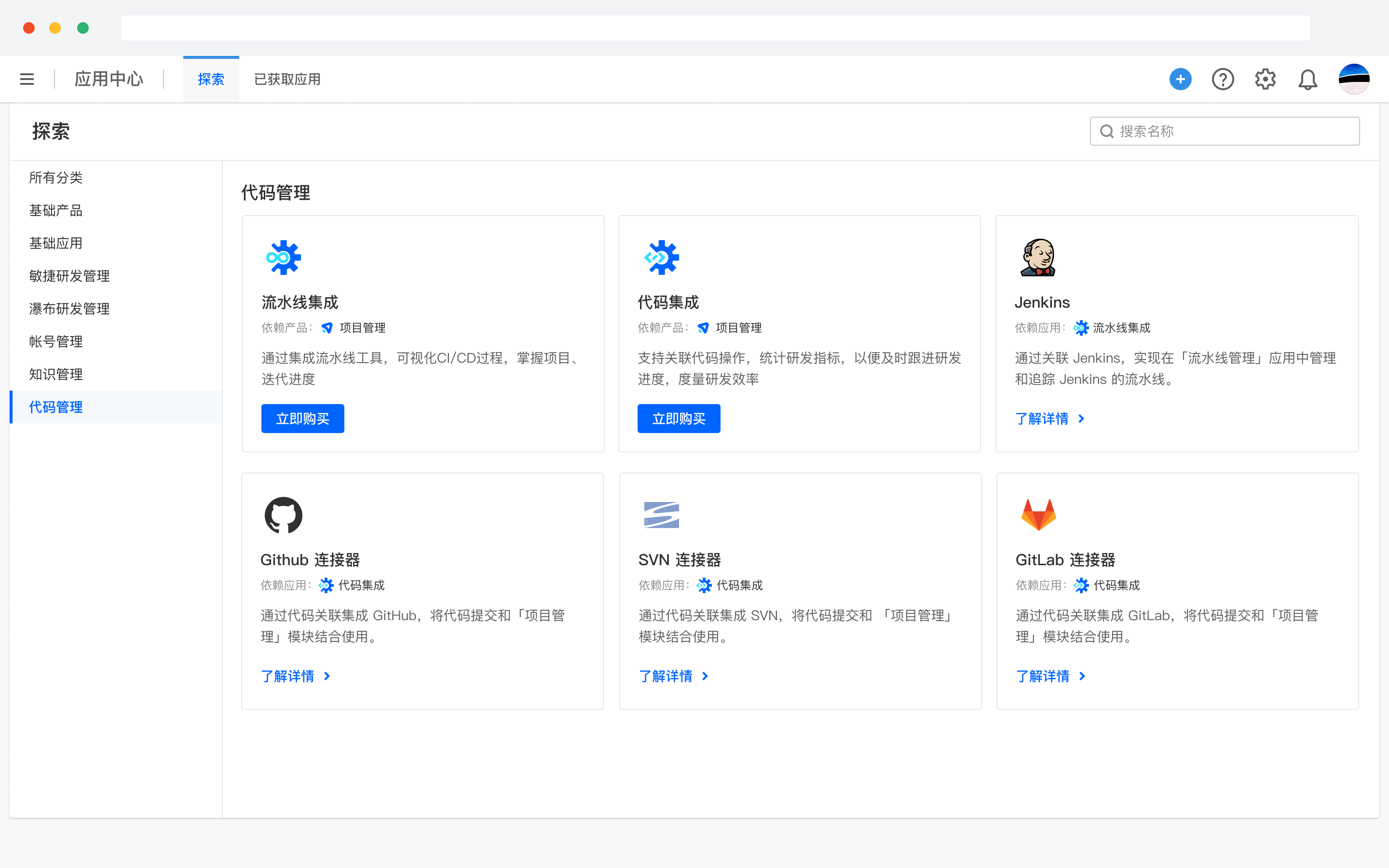 开放式的 DevOps 工具集成能力,能够打通项目管理与实践,帮助企业快速搭建起适合团队协作的工具链,实现软件价值交付闭环。