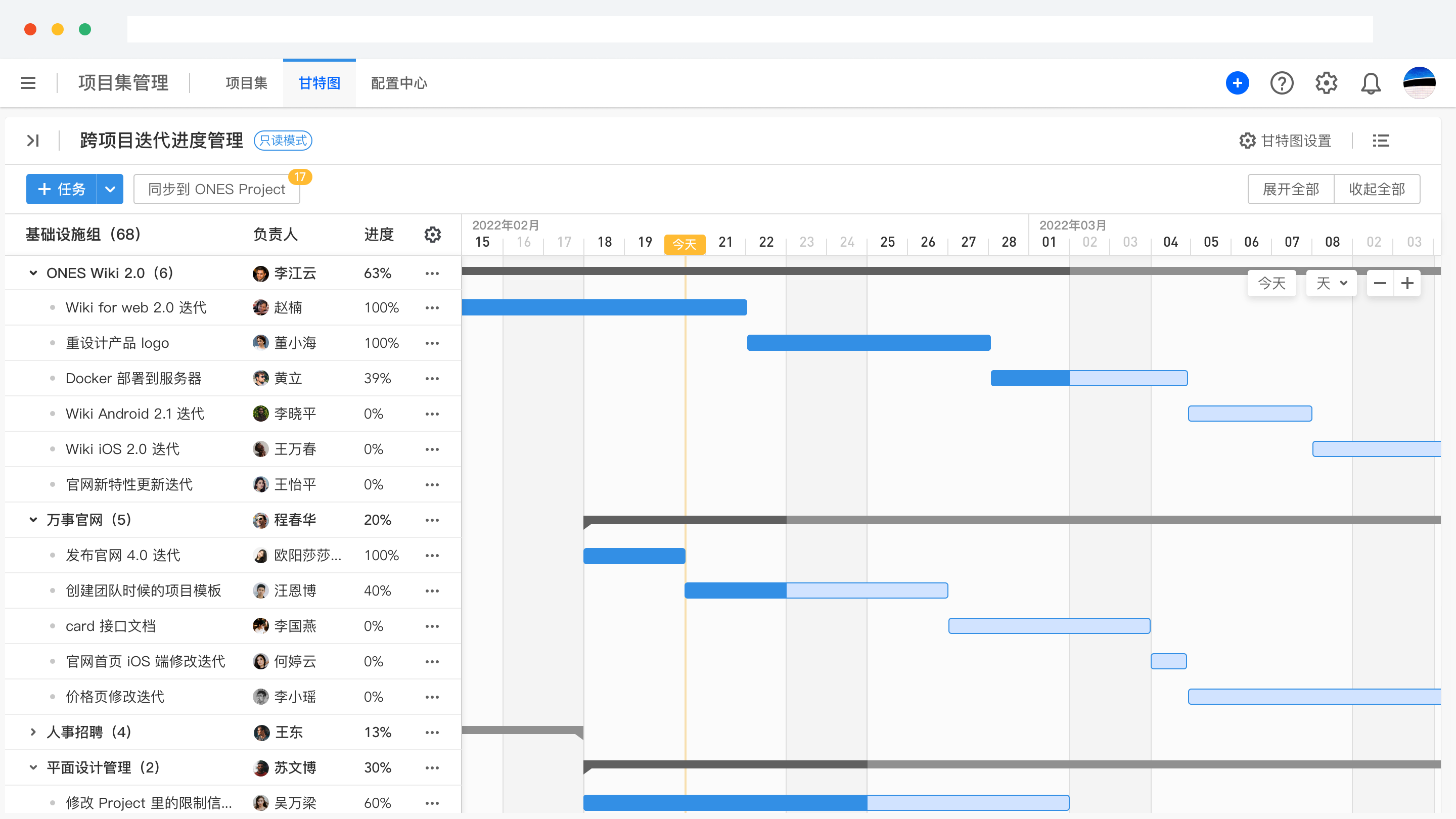 可制定跨项目迭代计划,轻松掌控多个迭代的进展 。可与成员共享跨项目迭代计划 ,推动团队无缝协作。