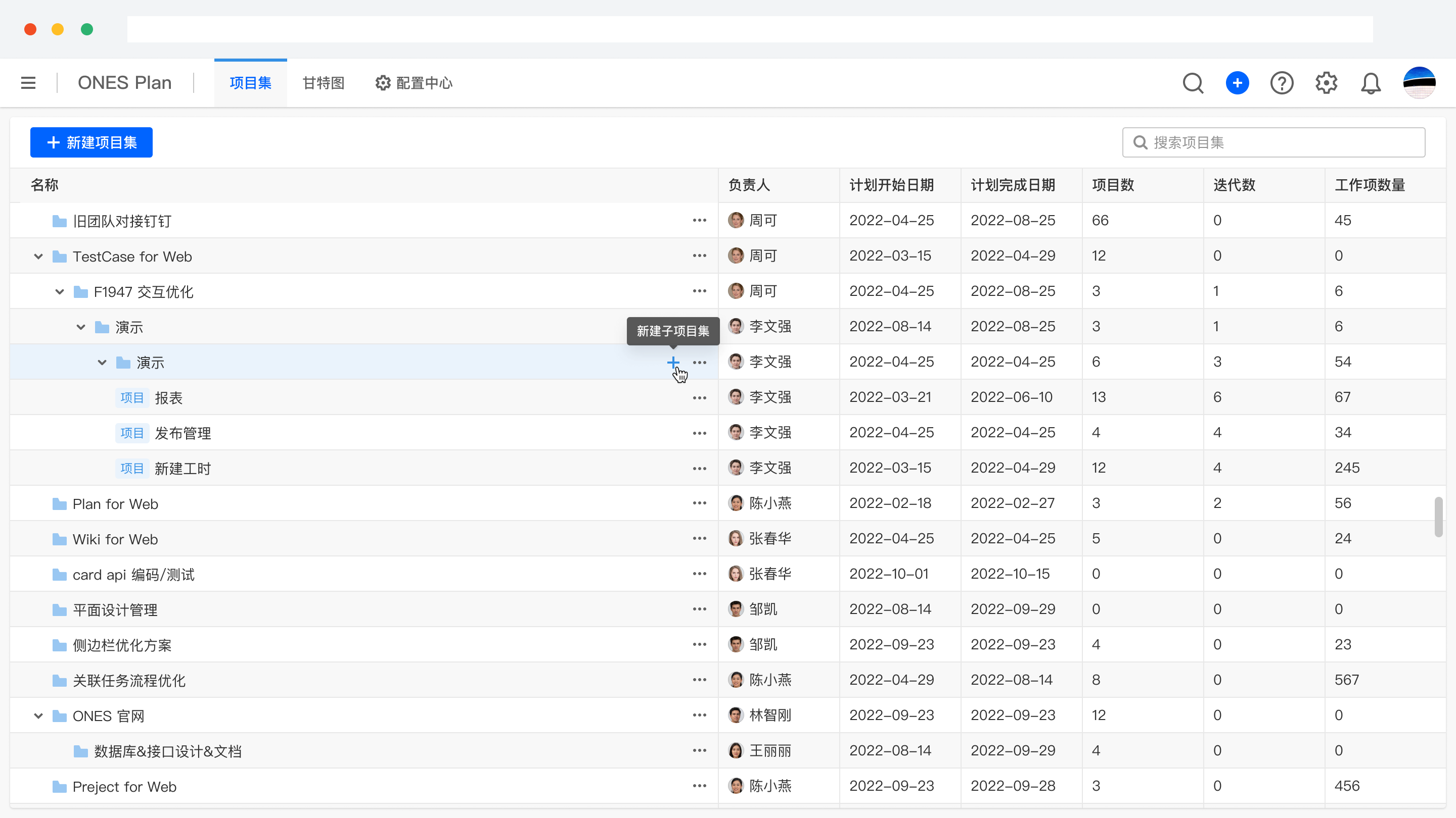 清晰展示项目层级,实现多项目并行管理。多级汇总概览数据,整体把握项目健康度。