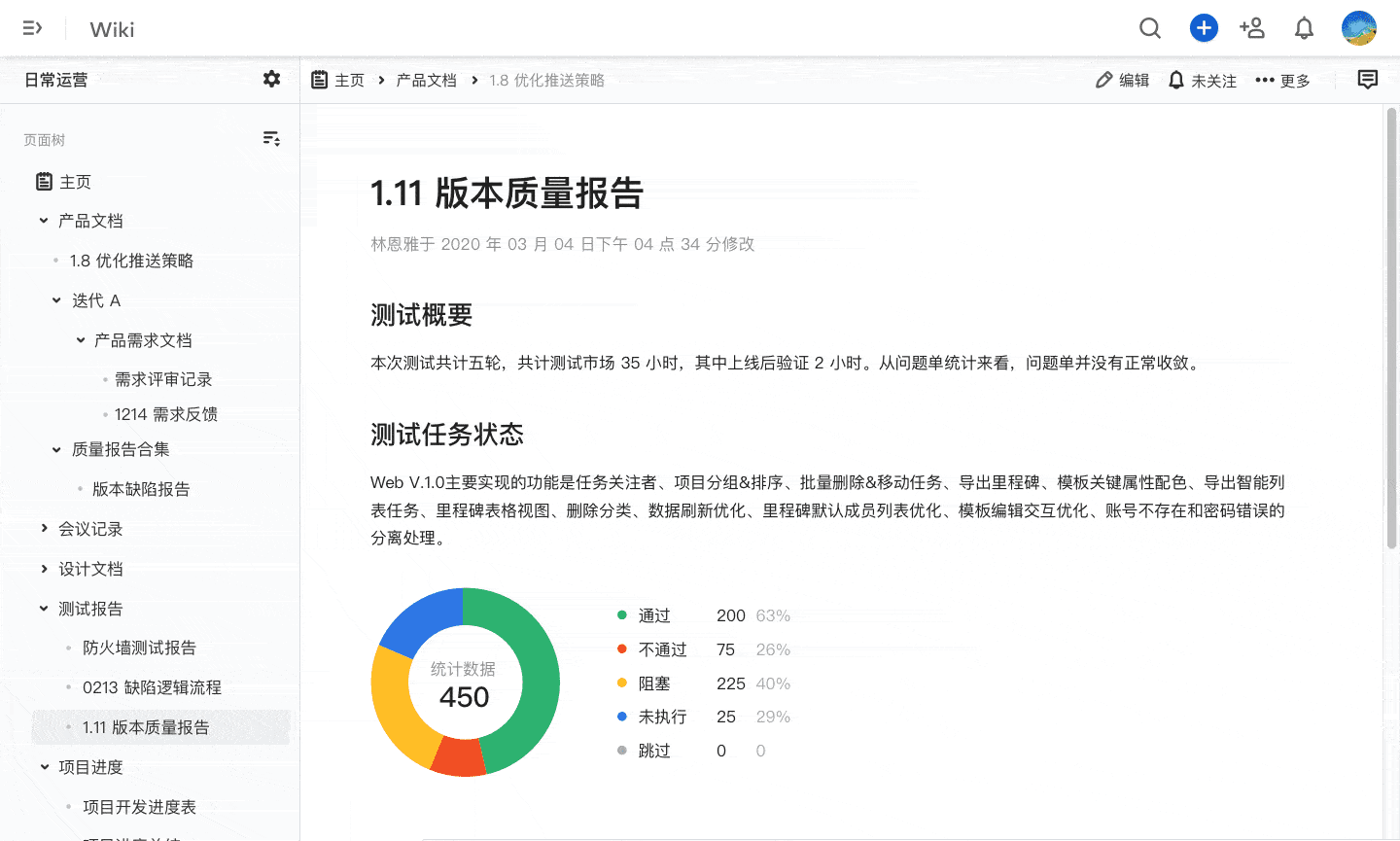 当一个迭代完成并发布后,可以召开全员迭代回顾会,通过燃尽图、工时日志、持续集成报告等各类数据报表,复盘迭代进度、质量和成本偏差,讨论改进建议。迭代结束后,还可以用 ONES Wiki 将经验沉淀下来,形成团队知识库。