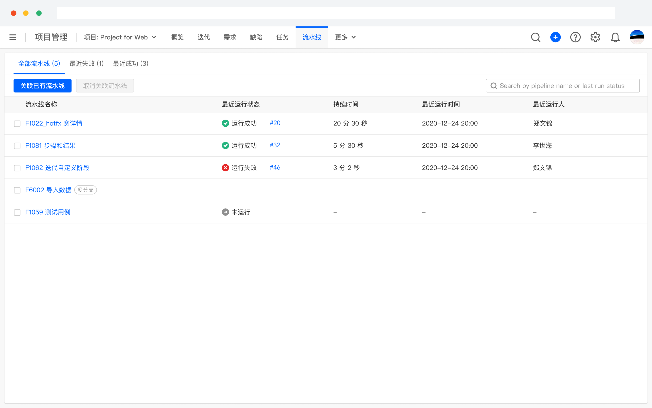 在开发阶段,可以通过流水线管理工具 Code Integration 和 Pipeline Integration,将构建、部署与项目、迭代整合到一起,实现可视化的交付管理。